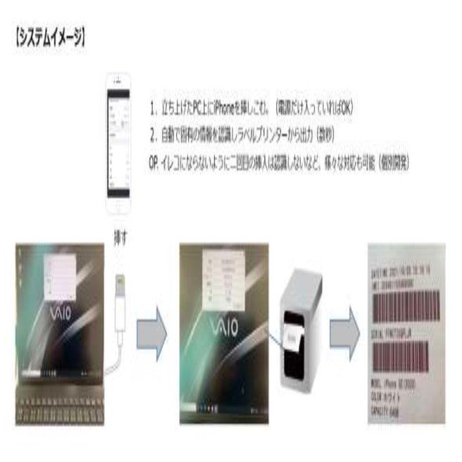 モバイル関連企業向けバックオフィス DX 支援とサイバーセキュリティ事業を展開する株式会社ビヨ ンドブルーは(本社:神奈川県横浜市 代表取締役:木村光秀)は、iPhone,iPadの端末情報を簡単に 取得しラベル印刷できるソリューションの販売を開始しました。例えば大量の iPhone を法人企業が採 用すると多くの企業では保守・運用を外部委託することになり、これらの管理で毎日の入出庫の作業が 発生致します。また、不要になった iPhone が中古業者に流通されると次の業者に販売する際に、検品 作業が発生するのですが、短期間での処理を求められる為、その工数は計り知れないものがあります。 設定画面から一般・情報の中に入り中身の確認する業務は単純ではありますが、桁数が多くアルファベ ットと数字の誤認識にも注意が必要で見直す為のチェック時間や手戻りで、ミスが発生したりするもの です。そうした作業の課題を解消するのが、「Plug-i」となります。PC に専用ソフトが用意されており、 ライトニングケーブルを電源の ON になった iPhone 等に挿すだけでラベルプリンターから、端末固有の 情報(IMEI,色、S/N、メモリー等)が自動で印刷されるので、業務従事者は、端末の画面を触ることな く情報が入手できるので、見間違いや記載ミスもなく劇的に時間短縮ができるものです。かかる時間は 数秒となり、繁忙期の採用増や、コロナ禍における密な業務を気にしないで済む画期的なソリューショ ンです。